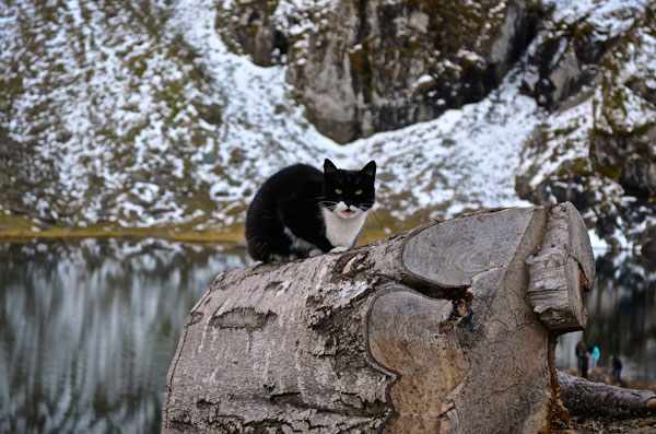 A bear crossed the road and then stopped behind some bushes by the roadside and watched as I slowly passed. I stopped just a bit after the bear. We stared at each other for about 20 seconds. My photograph attempt was pretty much a failure though. I’m sorry