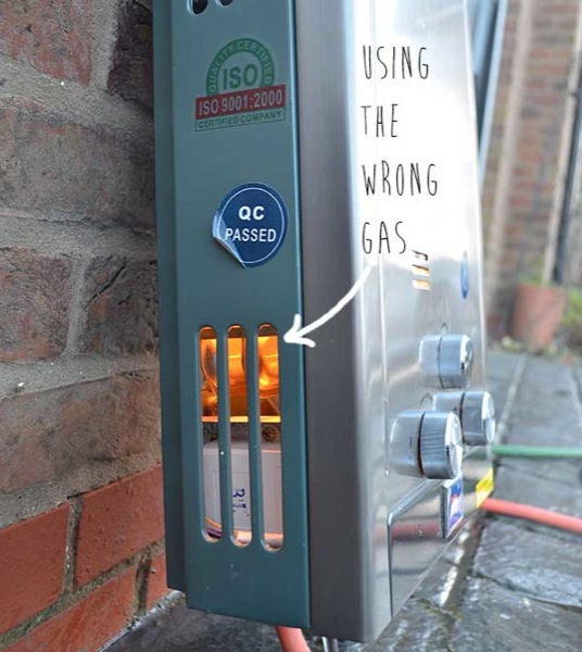 A gas powered instant water heat–experimenting with jet sizes