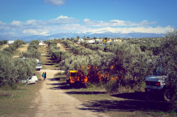 All I knew was that there was some rave/festival in Santa Fe, near Granada (aka Dragoff or Dragon festival โ read more) so we put that into the satnav and went. There was no sign of any party on arrival – not even the distant reverberation of a bass bin which I was relying on for the final location. This was pretty well hidden. We hung around for a while and pulled in at multiple roadsides hoping we hadnโt wasted a days worth of fuel coming back up the coast – See the post a change of plans.
