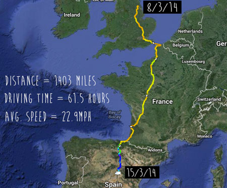 I’ve been living in the van for just over a week and have travelled 1400 miles from England to Spain.