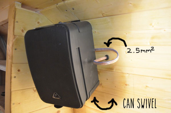 The speakers sound great but there was a problem with noise! Most of the time I’d be playing music from my computer straight into the amp. The noise problem was when the computer plugged into the mains power supply via the on-board inverter (seen on the 12V electrics wiring page). I think the problem was due to a combination of a poor quality (quasi-sine inverter) and a bad ground due to being in a vehicle.